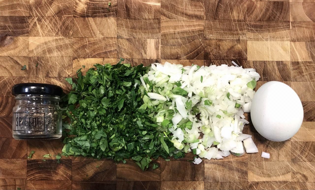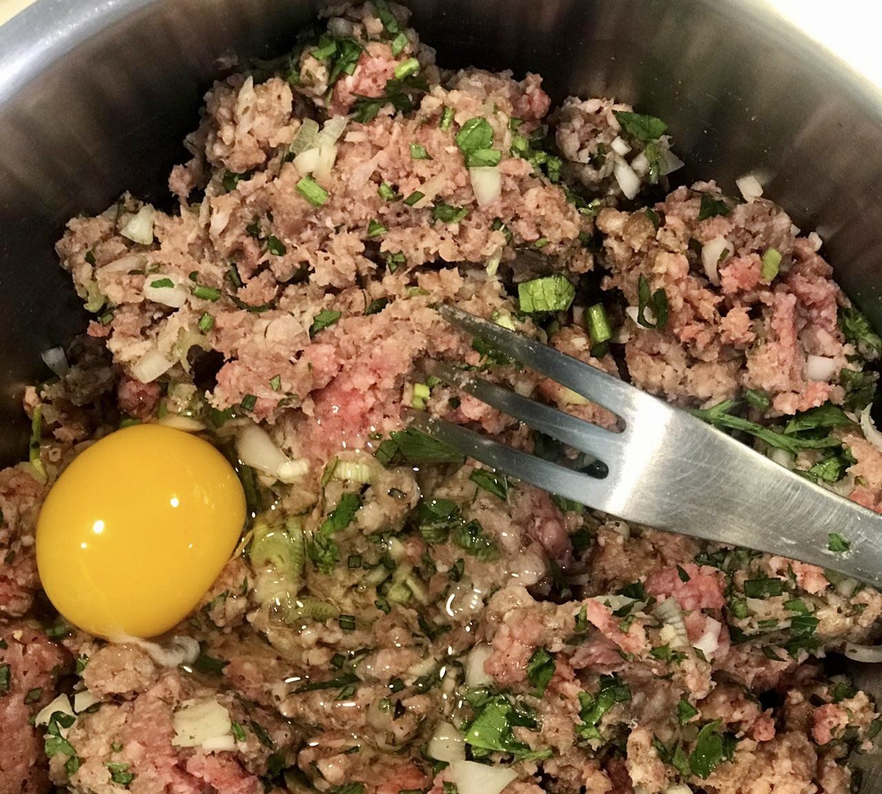 Se mezclan todos los ingredientes bien. Hacer bolitas del tamaño deseado y poner a la plancha o asador.